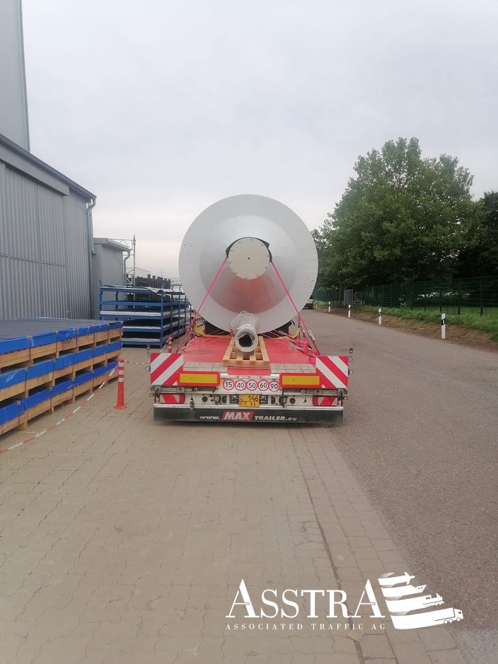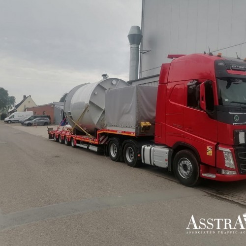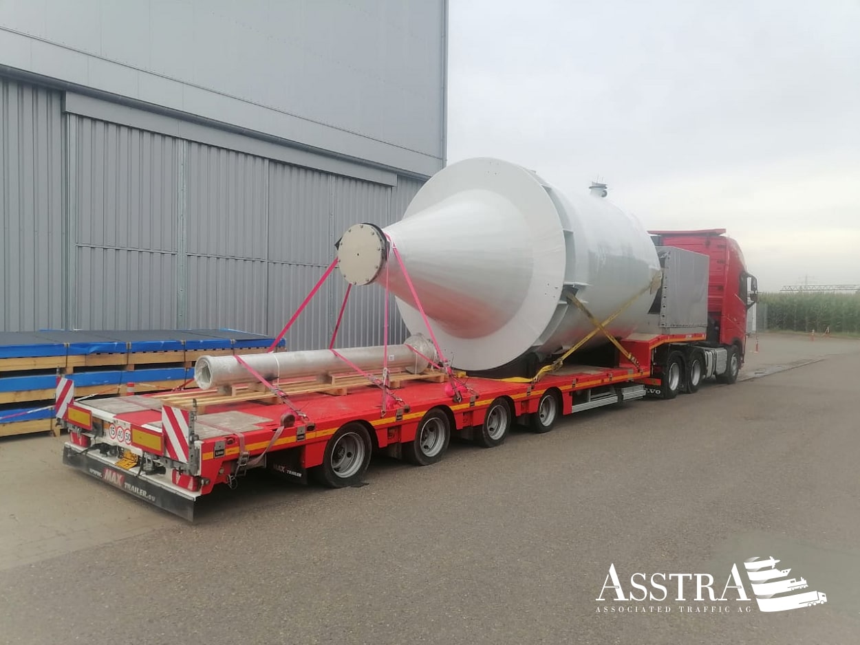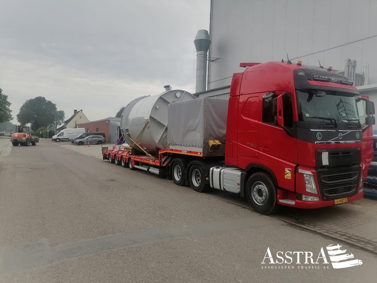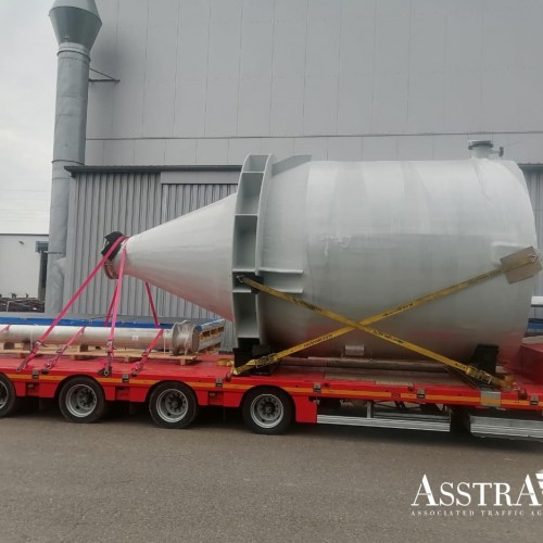 Клиент обратился в AsstrA с запросом о перевозке емкости для химического завода из Миндена, Германии, в Уральск, Казахстан. Особенность груза - негабаритный размер: вес емкости составлял более 3,5 тонн при размерах 6,5 х 3,3 х 3,5 метра.